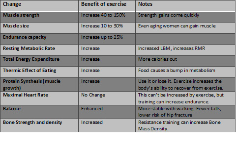 Table 1: Changes from aging that are reversed or minimized by exercise.