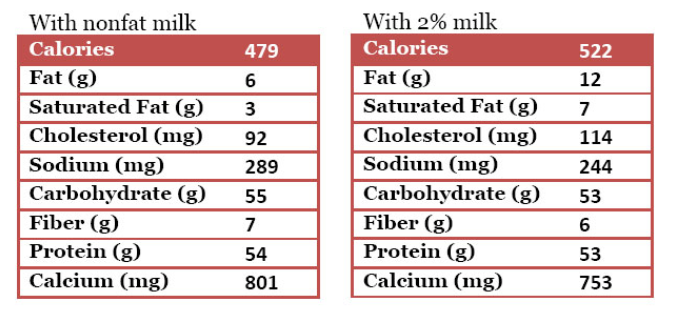 • 1  1/2 Cups of Nonfat milk or 2% milk (or milk substitute of your choice)