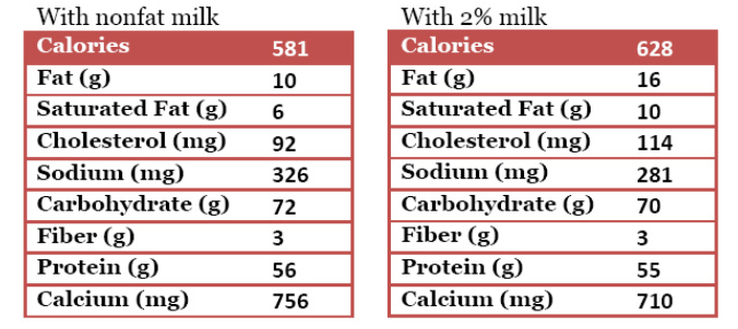 • 1  1/2 cup nonfat milk or 2% milk (or milk substitute of your choice)
