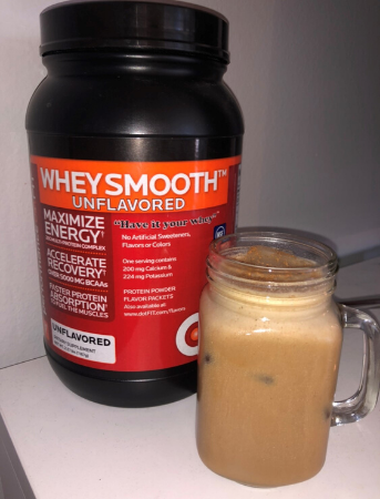 Place all ingredients in a shaker bottle and shake until smooth or add to a blender for a frappuccino